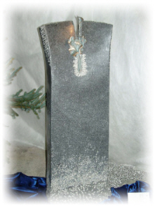 Grabmal im Hochformat.Geriffelt und angeschliffen. Ornament eingearbeitet